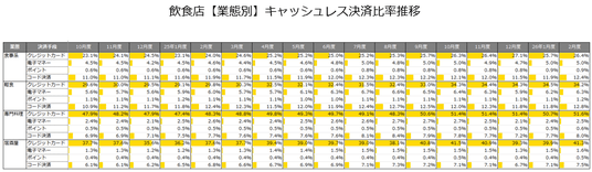 キャッシュレス決済比率は1月度から2月度にかけて、すべての業態で増加した