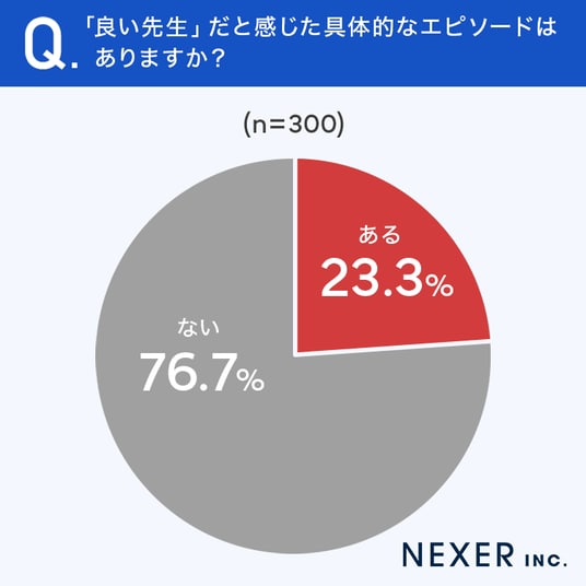 ■23.3%が「良い先生」だと感じたエピソードが「ある」と回答