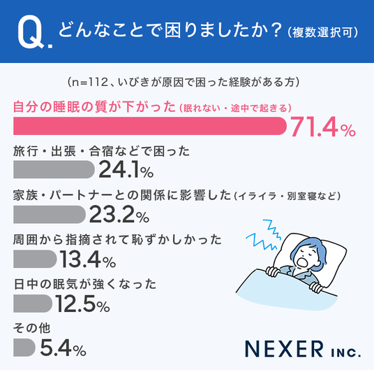 株式会社NEXER・『いびき』や『睡眠時無呼吸』に対する意識と疲労の関連性に関する調査