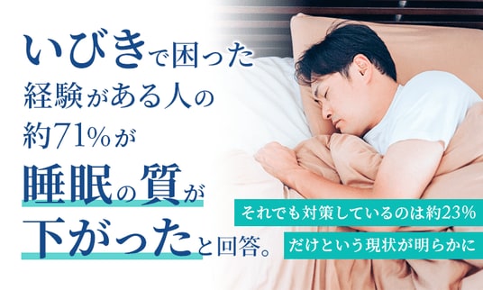 今回の調査では、いびきが気になったことがある方のうち半数以上が困った経験を持ち、なかでも「睡眠の質の低下」を実感している方が7割を超えることが明らかになりました。しかし、実際にいびき対策を行っている方は約23%にとどまっています。