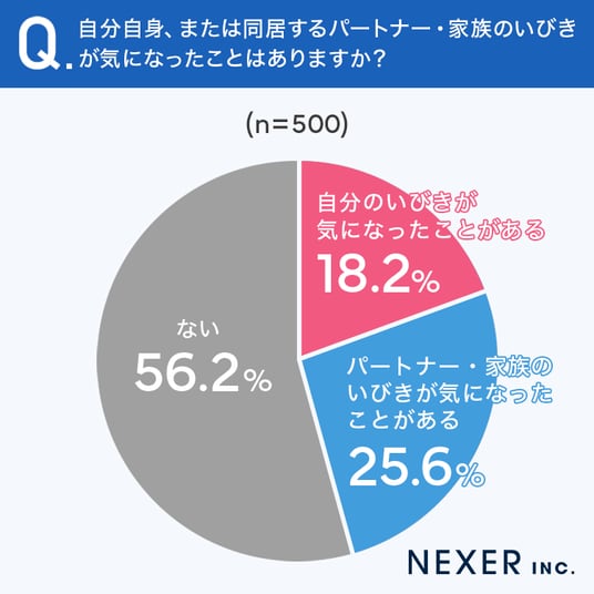 まず、自分自身、または同居するパートナー・家族のいびきが気になった経験があるか聞いてみました。