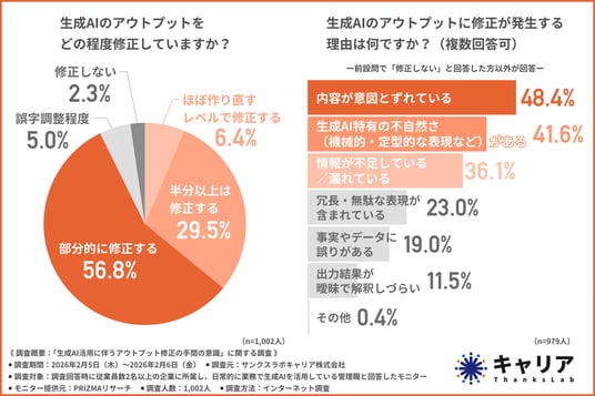 今回の調査では、生成AIの活用が進む一方で、実務上は複数の修正が発生している実態が明らかになりました。