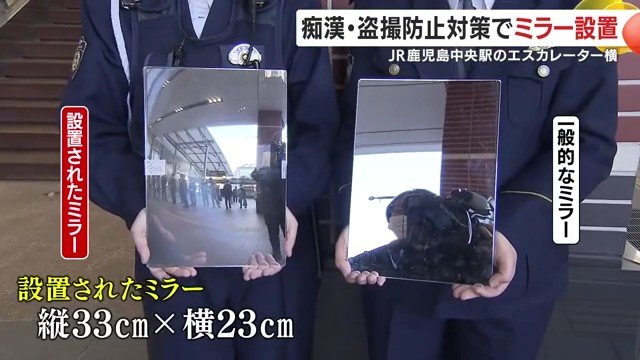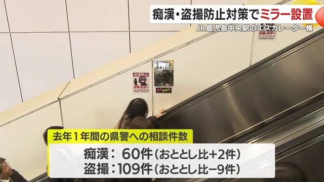 痴漢や盗撮被害の防止に向け、鹿児島県警がJR鹿児島中央駅のエスカレーター横に特殊なミラーを設置した。この取り組みは、犯罪者に周囲の目を意識させることで抑止効果を狙ったもので、利用者からは「安心感が違う」との声が聞かれている。