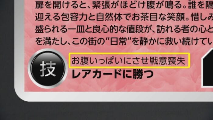 この『大将カード』には、ゲームとして楽しめる要素も盛り込まれている。カードそれぞれに『技』があり、三浦さんの技は、『お腹いっぱいにさせ、戦意喪失』させること。