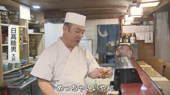 この日、栗山さんは、完成したカードを手に小倉北区の『寿司処 和さび』へ。モチーフにした店の『大将』に見せに行くのだという。