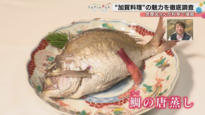 もう一つの名物である鯛のから蒸しは、九谷焼の大皿に盛り付けられて提供される豪勢な料理である。鯛を背開きにし、腹部におからを詰めて蒸し上げるという調理法には、武家文化を象徴する意味が込められている。
