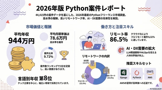 2026年最新のフリーランスの「Pythonエンジニア案件の調査レポート」を発表します。