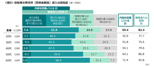 「あてはまる違反行為が何かすべて知っている」は7.6%にとどまる。20~40代は「制度の導入自体を知らなかった」が2割台。<図5>