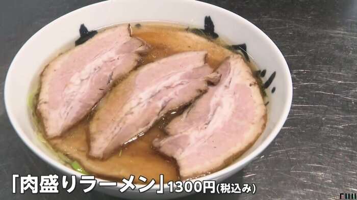 店の定番は、大きく切られた豚バラ肉のチャーシューがこれでもかと入った肉盛りラーメンだ。