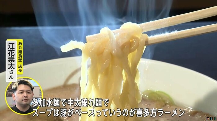 多加水麺で中太縮れ麺でスープは豚がベースというのが、やっぱり喜多方ラーメンだと思いますね。