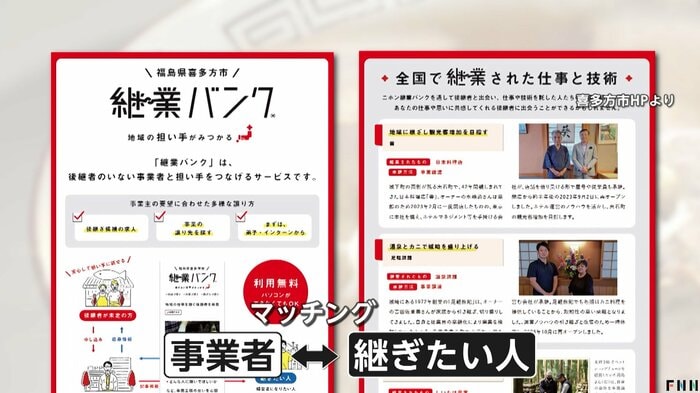 市は、後継者がいない事業者と継ぎたい人をマッチングする取り組みを行っている。