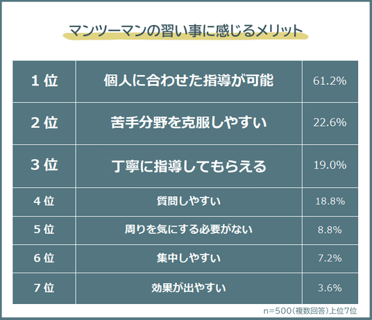 マンツーマンの習い事に感じるメリット1位は「個人に合わせた指導が可能」