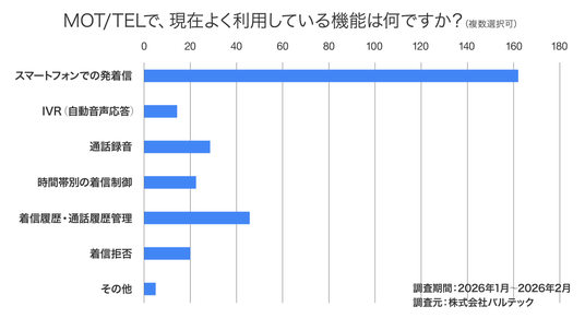 32,000社以上の導入実績を持つクラウドPBX「MOT/TEL(モッテル)」を展開する株式会社バルテック(本社:東京都新宿区)は、自社サービス利用者を対象に「クラウドPBXの導入に関するアンケート調査」を実施いたしました。
