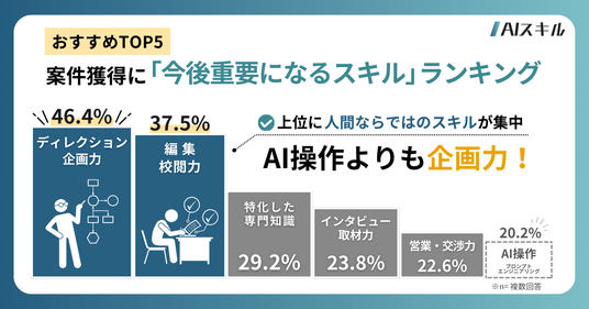 AIを操作する技術そのものよりも、「構成案や戦略を練る力(ディレクション・企画力)」が1位となり大きく上回る結果となりました。