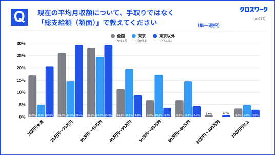 「現在の平均月収額について、手取りではなく「総支給額(額面)」で教えてください(単一選択)」
