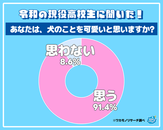 【犬を可愛いと思っている高校生の割合はさすがの91.2%!】