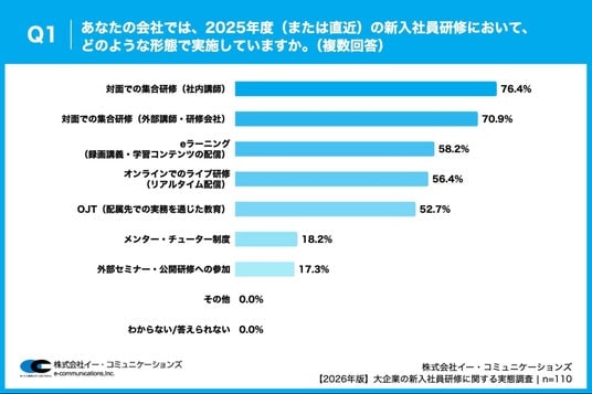 株式会社イー・コミュニケーションズ(本社:東京都港区、代表取締役:佐藤信也)は、大企業(従業員数1,000名以上)の人事・人材開発担当者110名を対象に、【2026年版】大企業の新入社員研修に関する実態調査を実施しましたので、お知らせいたします。