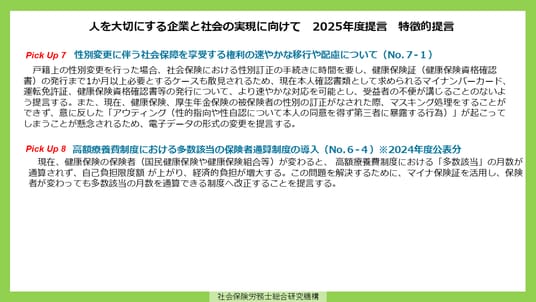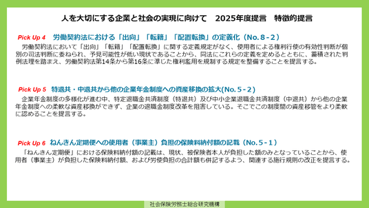 当連合会は、労働法・社会保障制度及び人事労務の専門家であり、労使双方の視点を併せ持つ社労士の知見に基づく政策提言を、今後も継続的かつ積極的に発信する。