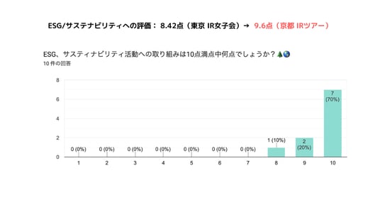 ESG/サステナビリティへの評価: 8.42点(東京 IR女子会)→ 9.6点(京都 IRツアー)