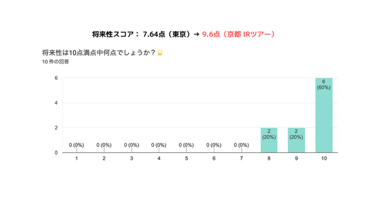 将来性スコア: 7.64点(東京)→ 9.6点(京都 IRツアー)