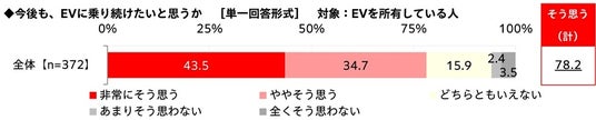 - 「今後も、EVに乗り続けたい」EVオーナーの78%