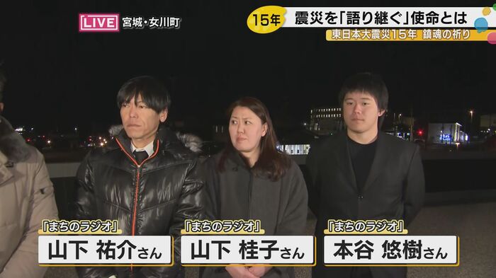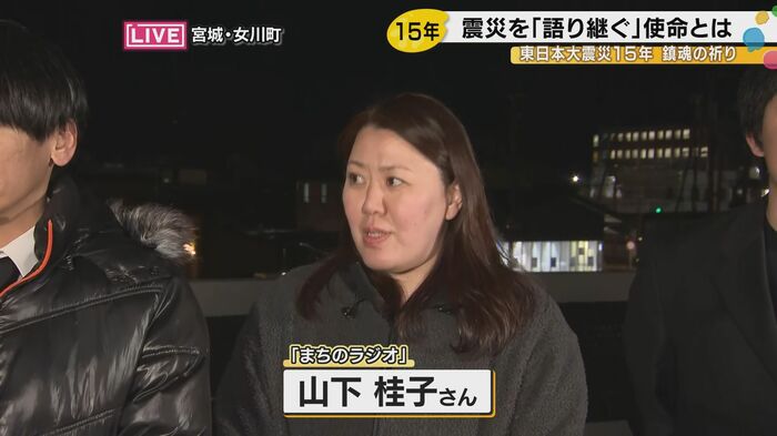 当時、最大14.8メートルの津波に襲われ、人口約1万人に対し827人が犠牲となり、町の約9割にあたる3934棟の建物が被害を受けた宮城県女川町。この鎮魂の祈りに包まれる日に、能登半島地震で被災した石川県輪島市の臨時災害放送局「まちのラジオ」の3人が訪れました。