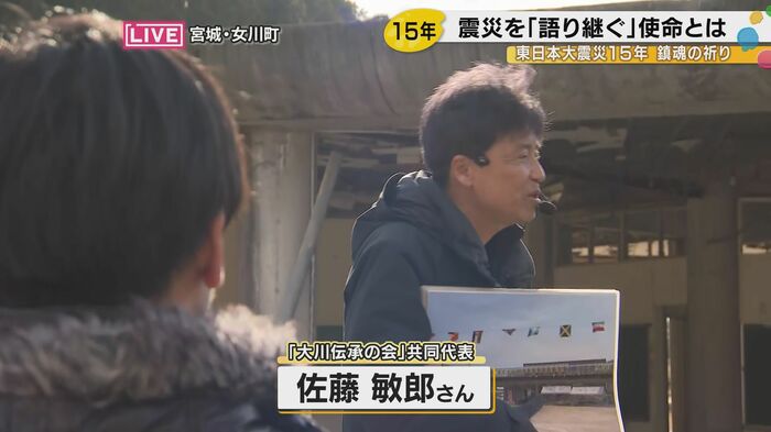 現地では、語り部を務める大川伝承の会・共同代表の佐藤敏郎さんからお話を聞いたといいます。佐藤さんはこの場所で当時6年生だった次女を亡くし、その記憶をつなぐ活動を続けています。