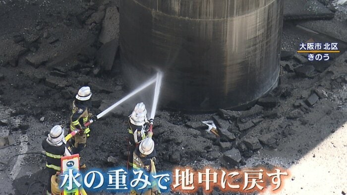 一方現場では、消防によってパイプを再び地中に戻す作業が行われました。