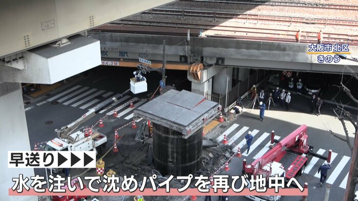 午後2時過ぎに会見を開いた大阪市建設局の担当者によると、現場では浸水対策として、大雨の時に一時的に雨水をためる下水道管を設置する工事を実施。