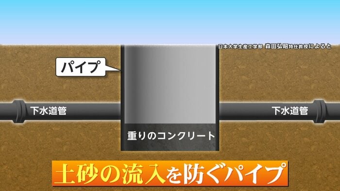その際に、土砂の流入を防ぐための縦穴のパイプ(下水道のトンネルを縦につなぐ“縦坑”と言われるもの)を設置したところ、それが地上に出てきたということです。