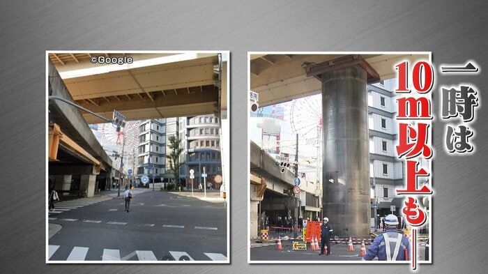 11日午前7時ごろ突然、大阪市北区・新御堂筋の高架下で、巨大な鋼鉄製のパイプが地中から“せり上がって”出現しました。