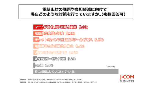 カスタマーセンターを持たない中小企業の7割以上が、電話対応の課題や負担軽減に向けた対策を行っていない