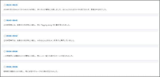 エントランスの監視映像をAIが解析し、「赤い服の人物」「大きな荷物」などの特徴情報を自動タグ付けします。管理者は自然言語検索により、該当人物や出来事の映像を瞬時に特定できます。検索時間の大幅短縮により、迅速な事実確認と確実な証拠提示を可能にします。