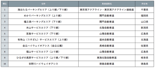 「じゃらん 絶景に癒やされるサービスエリア・パーキングエリアランキング」