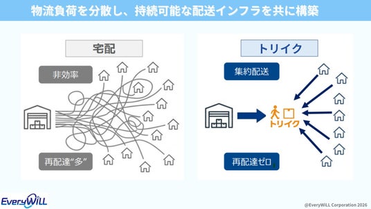 これら「自宅での荷物の対面受取」と「自宅への置き配」の双方が抱える課題を解決する第3の選択肢となるサービス「トリイク」を、株式会社Every WiLLは今年から新たに展開を開始しました。