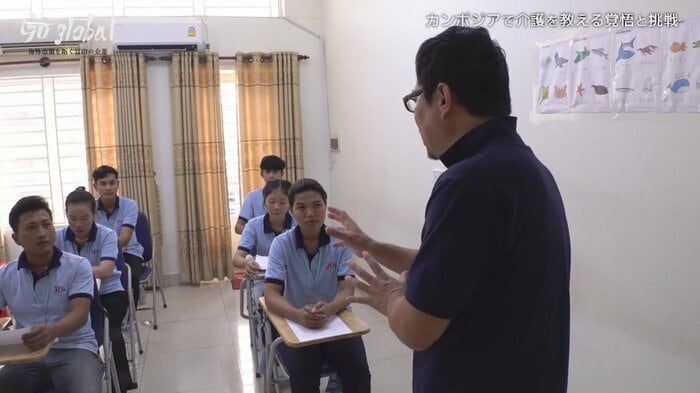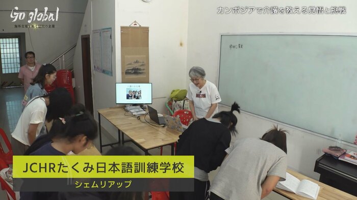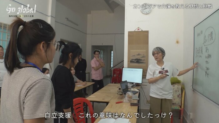 阪井さんは富山型デイサービスを海外にも届けることを夢見て、まずは現地の人材育成のため、日本語学校での授業を始めた。