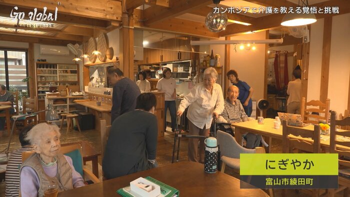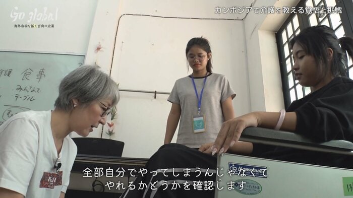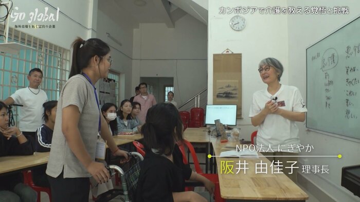 「ちゃんとした介護を教えてあげたいって、私はここでそれをやりたい」。カンボジアの地で、阪井由佳子さんはそう語る。富山市の介護施設を運営するNPO法人にぎやかの理事長である阪井さんが、異国の地で挑戦を始めた。