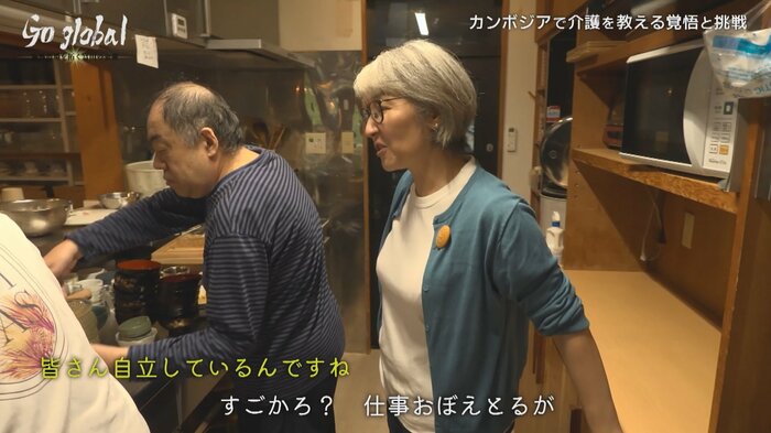 30年以上介護の現場に携わってきたベテランの阪井さんだが、初めての海外での挑戦には苦悩も伴う。「私なんかいくら経験あるとしてもいまの学校からしたら新入社員だからさ、実績だって別に口で説明したところで意味はないのよ。ここでは私の価値なんて…でも、もっとより良いものを提供できる自信もあるから」。