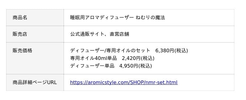 誰もが簡便に利用できる睡眠環境づくりの提案を通じて、一人でも多くの方の心身のコンディションを香りでサポートしていくことが弊社の使命であると考えております。