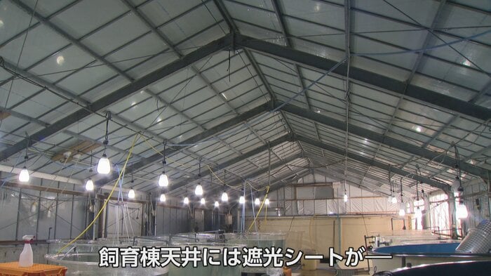 さらに深刻なのは、ノドグロの極度の神経質さだ。飼育棟の天井には光を遮る遮光シートが張られ、成魚の飼育棟入り口にも黒い幕が設置されている。