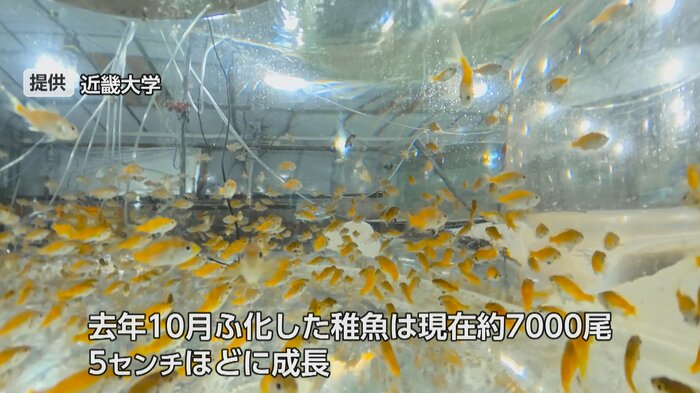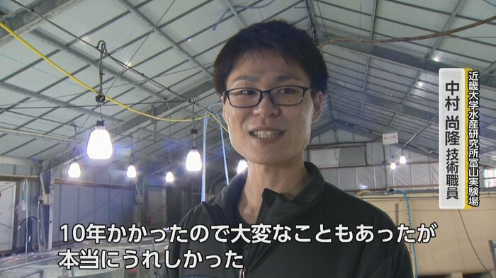 「10年かかったので大変なこともあったが本当にうれしかった。かわいらしいなと思う」と語るのは、同実験場の中村尚隆技術職員。現在、去年10月にふ化した稚魚およそ7000尾が5センチほどに成長している。