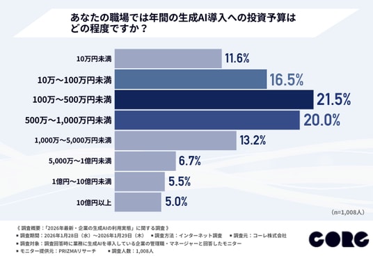 「いきなり巨額投資はしない」企業が多数派?生成AI投資は『100万~500万円未満』が最多に