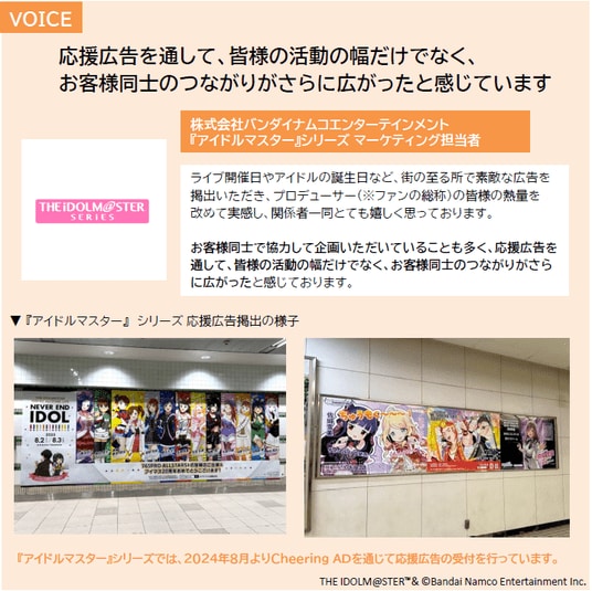 ファンの行動や想いがコンテンツの可能性を広げていく原動力となっています。Cheering ADは、こ