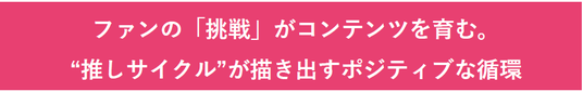 2023年、当社はファン主体の能動的な推し活である「応援広告」を通じ、ファン同士の共感が生まれ、その熱量がコンテンツをさらに活性化していくポジティブな循環を「推しサイクル」と名付けました。