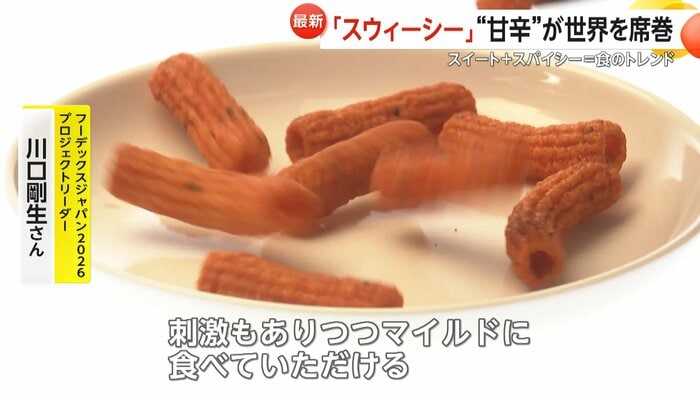都内で開催されたアジア最大の食の展示会で、スイーツ(甘み)とスパイシー(刺激)を掛け合わせた造語「Swicy(スウィーシー)」が新たな食トレンドとして注目を集めている。唐辛子をブレンドしたはちみつや、甘辛いタイのスナックなど、世界各国の「Swicy」食品が続々と登場。都内などでは一足先に「Swicy」を味わえる店も出てきている。