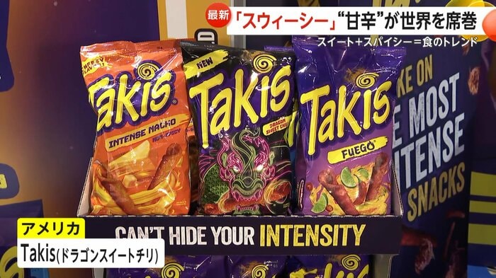 一方、アメリカのトルティーヤスナック「Takis(ドラゴンスイートチリ)」は、見た目は真っ赤だ。でも辛さは少し刺激がある程度で、ザクザクした食感が人気だ。