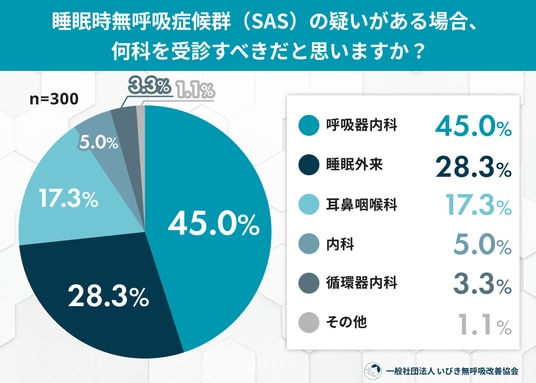 - 受診先の認識: 「呼吸器内科」(45.0%)や「睡眠外来」(28.3%)が適切と考える人が多い。