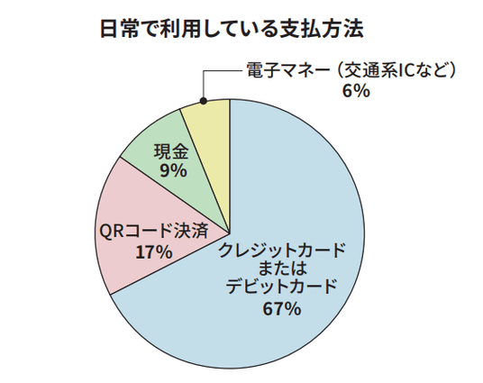 - 日常での支払方法は、カード決済が最も多く約7割、QR決済などを含むキャッシュレス決済は9割以上に。決済方法を選択する際に重視するポイントは、約8割が「還元率」、約5割が「セキュリティ・安心感」と回答。