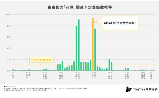 - 東京の花見予定ピークは4月4日、前週の3月28日29日にも予定が集中