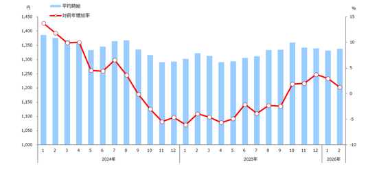 1.職種別平均時給(2026年2月)